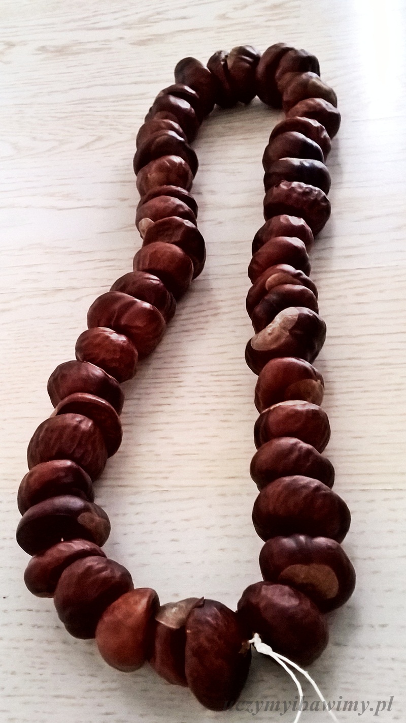 Do zabawy bardzo chętnie wykorzystują ją dzieci. Korale można wykonać o każdej porze roku używając koralików, kuleczek zamiast kasztanów. Są świetnym pomysłem na prezent z okazji Dnia Mamy czy Dnia Babci.