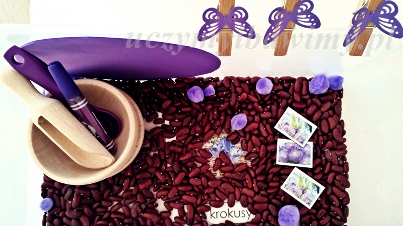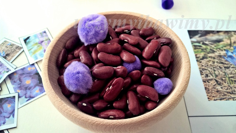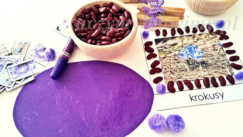 Dzisiaj było fioletowo. Ostatnio na facebooku prosiłam Was o podpowiedź jaki kolor będzie odpowiedni na marzec . Miałam ogromny problem, zielony, żółty… a może szary… ale żadnego z nich nie byłam pewna, nie przekonywał mnie 😉 Kilka dni temu pomyślałam o fioletowych krokusach! Tak! To jest to! 🙂 „Poznaję kolor fioletowy”.