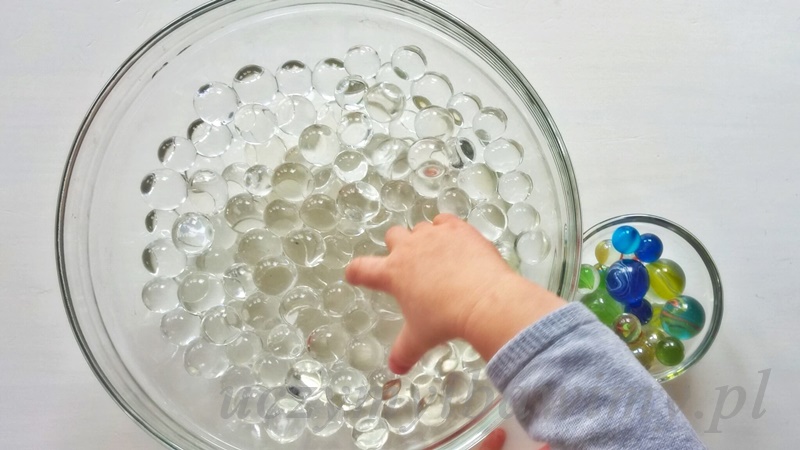 Zabawa typowo sensoryczna. Silnie oddziałuje na dotyk i wzrok. Dwa rodzaje kulek. Szklane kolorowe, twarde, zimne oraz bezbarwne, elastyczne, jednocześnie kruche, mokre. Żadne kulki nie są jadalne. Hydrożelowe nie są toksyczne, ale też nie są jadalne. Szklane są niebezpieczne dla maluszków, ale na starszaków też uważaj.