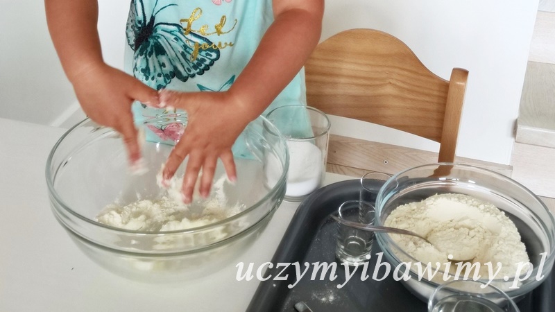 • 2 szklanki mąki pszennej + 3 szklanka do dosypywania (u nas poszła praktycznie cała)