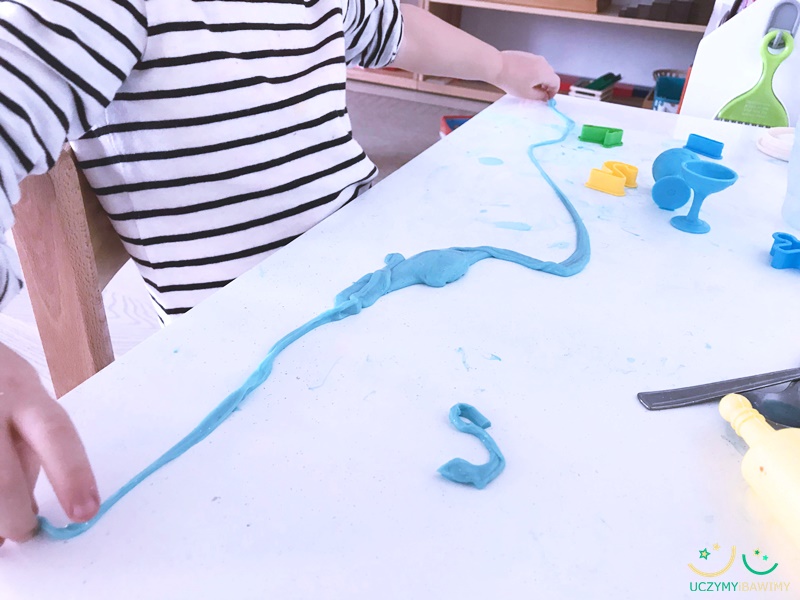 Nasza masa miała zdecydowanie fajniejszą konsystencję na drugi dzień. Pierwszego dnia zostawiała ślady na rękach i na ubraniach! 😉