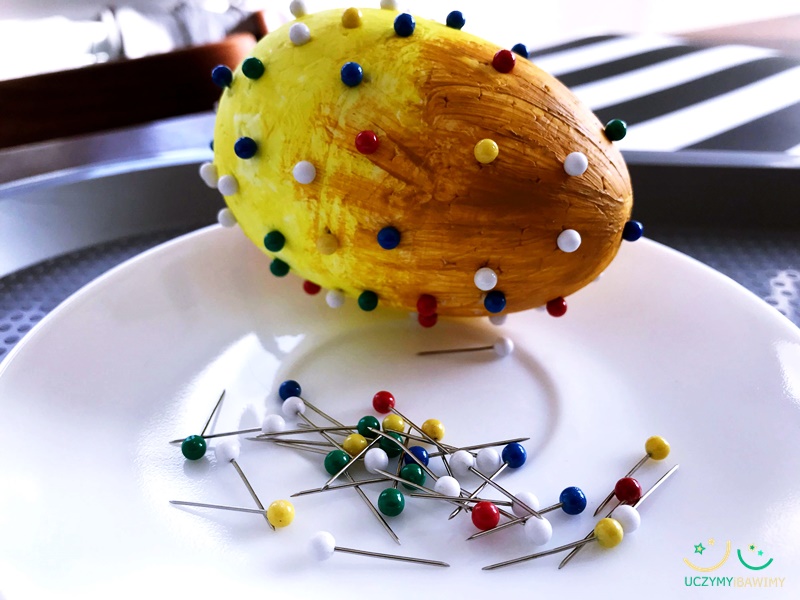 Gdy farba wyschła, ozdobiła je kolorowymi szpilkami ?.